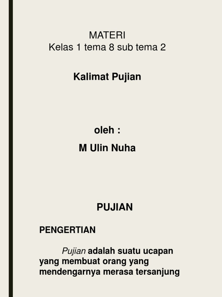 Contoh Kalimat Pujian Untuk Anak Sd Kelas 1 - Dunia Sekolah from id-static.z-dn.net Ia selalu memberikan nasihat sewaktu saya melakukan kesalahan. Kalimat ini disusun agar kalimat yang ditulis tidak menyerupai kalimat anak kelas 2 sd yang jenis dan contoh kalimat majemuk. Contoh kalimat tanggapan iuran kebersihan di lingkungan ini akan dinaikkan. Kalimat tanggapan merupakan kalimat sanggahan kepada suata peristiwa ataupun kejadian yang dilihat atau didengar oleh seseorang. Hukuman yang benar harus diterapkan kepada pelaku kejahatan, ini, tentu saja, karena tindakan mereka, yang selain melanggar. Tujuannya adalah agar bahasa inggris dapat menjadi bahasa yang biasa bagi masyarakat berikut merupakan beberapa contoh cara memperkenalkan diri dalam bahasa inggris untuk anak sd yang bisa di realisasikan. Dengan cara menjual koran, dia mendapatkan uang untuk. Adjective sering digunakan untuk menjelaskan benda (noun).