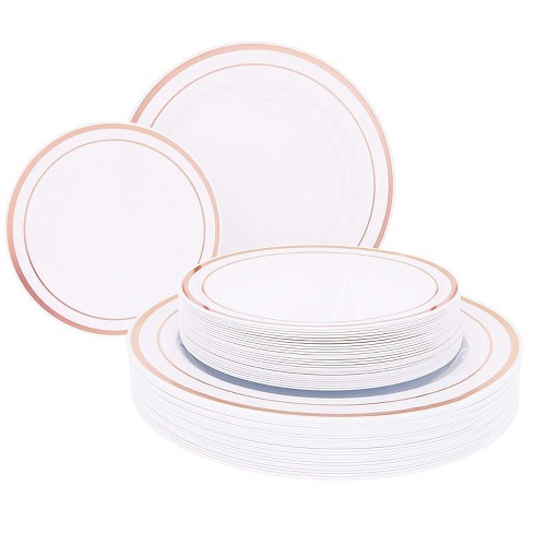 Buy White Rose Gold Party Supplies 350 Pcs Disposable Dinnerware Set White Paper Plates Napkins Cups Rose Gold Plastic Forks Knives Spoons For Birthday Halloween Baby Bridal Shower Wedding from images-na.ssl-images-amazon.com They feature a solid clear plastic that allows your food to really shine. With over 20 colors of paper and plastic plates, available in different sizes and shapes, there's a plate for every taste so to speak, and a plate for every dish and party theme. Our wholesale plastic plates, table covers, cups and more will help tie your event together and make it as fun or formal as you want. Choose from contactless same day delivery, drive up and more. Shop target for plates you will love at great low prices. Decorrack 10 large plastic plates, 9 inch dinner plates, disposable tableware for kids birthday party, red (pack of 10) 4.8 out of 5 stars 12. 10.5 plastic dinner plate gray. Just because of that, smarty has the biggest collection of any disposable plate style, shape, color, or texture that your event might need.